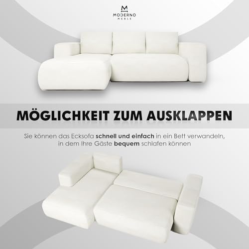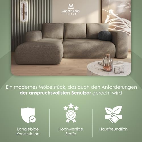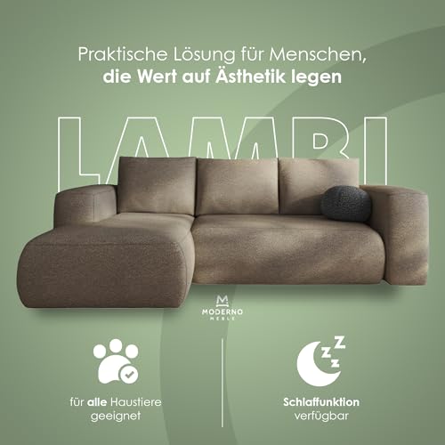 MODERNO Lambi Corner Sofa with Sleep Function and Bed Box, Sofa with 3 Seats and Robust Cover, L-Shape Sofa Bed, Modern Couch, 266 x 164 x 89 cm, Corner Left, Grey Beige