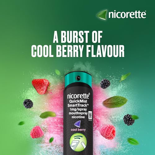 Nicorette Quickmist SmartTrack Mouthspray, Cool Berry (2 x 150 sprays) Smoking or Vaping cessation Aid, designed to start reducing cravings in 30 seconds (Quit Smoking or Quit Vaping Aid)
