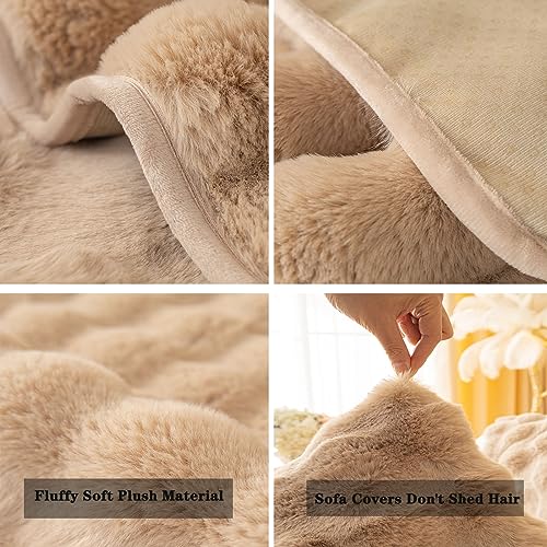 Nitoope Rabbit Plush Sofa Cover 1 2 3 Seater, Soft Warm Sofa Slipcover For Corner L Shape, Funny Fuzzy Sofa Cover, Non-Slip Velvet Sofa Cushion Covers, Thick Furniture Protector