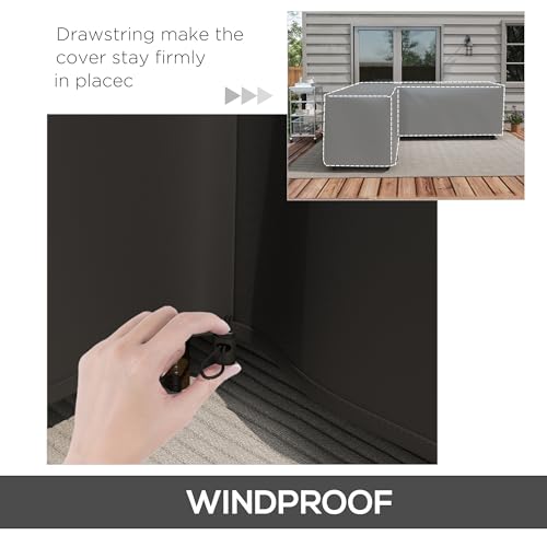 Outsunny L-Shaped Garden Furniture Cover with PU Coating, 420D Oxford Fabric Rattan Corner Sofa Cover, Waterproof Anti-UV Dustproof Windproof, Black, 250 x 250 x 79cm