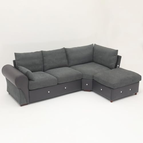 Panana Corner Sofa Linen Fabric Suite & Cushions – Sectional Group Chesterfield Sofa Settee – large corner sofa for living rooms (Dark Gray, 2 Seater with Built-in USB Conrer Chaise)