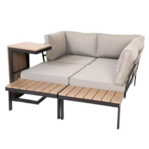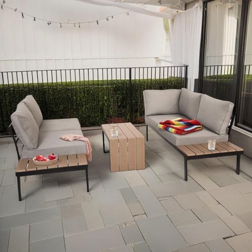 - SLEEK & MODERN: Featuring thick & comfortable grey cushions, this modular corner sofa & table set boasts a sleek and modern interchangeable design, adding sophistication to your outdoor decor while providing ultimate comfort for you & your guests.
