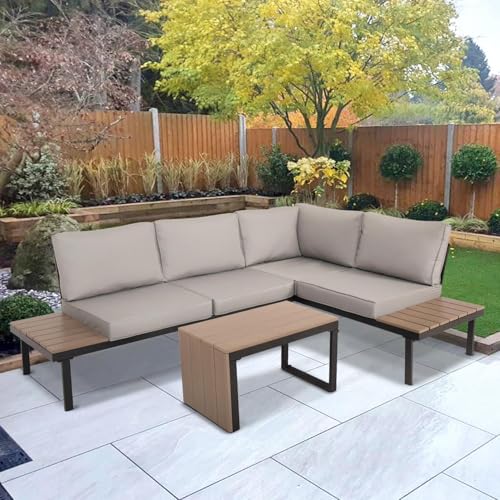 - 4-SEATER CORNER SOFA & TABLE: Transform your outdoor space with the versatile & functional Sienna interchanging garden furniture set. Featuring side shelves and an easy clean table, it’s perfect for holding drinks, snacks, and other essentials!