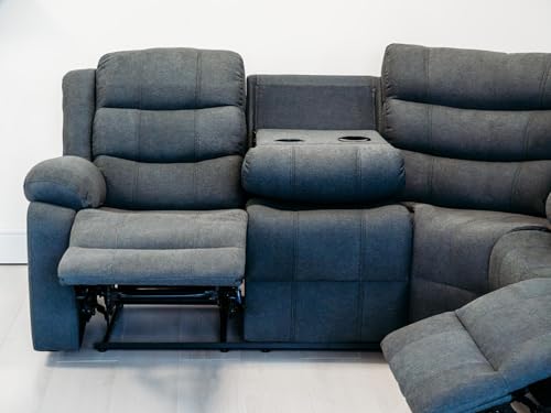 sleepkings Sorrentino Corner Recliner Sofa – Grey Soft Chenille Fabric – Manual Recliners with Drink Holders – Reclining Corner Sofas for Living Room