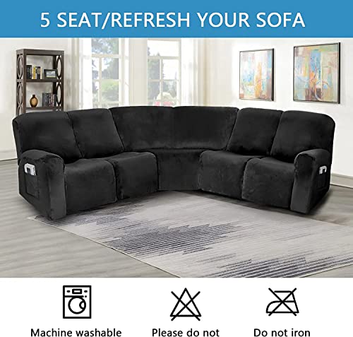 Sofa Covers Corner Sofa Covers, 7-Piece Sectional Couch Cover Corner Sofa Slipcover, L Shape Sectional Recliner Sofa Covers, Thick Plush Velvet Furniture Protector Cover (Black,L Shape 5 Seats)