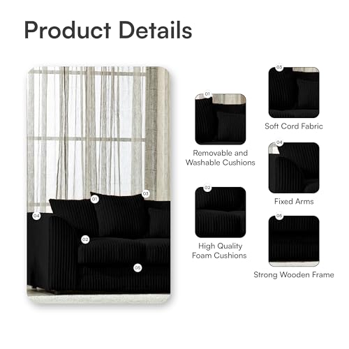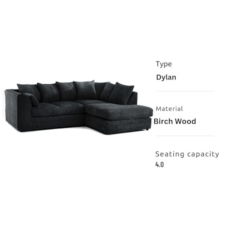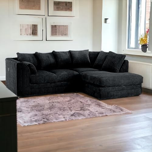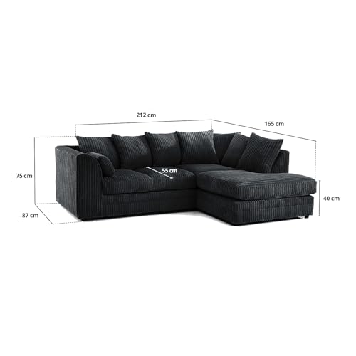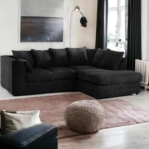 SOFASELECTIONUK LTD Jumbo Cord Scatter Back 4-Seater Right Hand Facing Corner Sofa: Elevate Your Living Room With Comfort and Style (Black, Right Hand Facing)