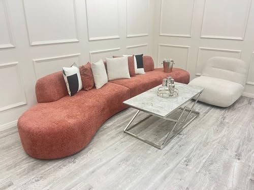Statement Home Decor Luxury Curved Corner Boucle Teddy Fabric Sofa in White, Green, Beige, Copper – Modern 6 Seater for Living Room (WHITE), 2023-FE