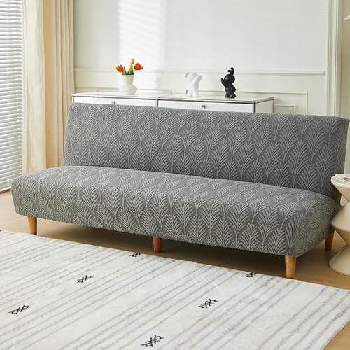 Surwin Armless Sofa Bed Cover Leaf Jacquard Non Slip Stretch Futon Slipcover Protector for 2 Seater/3 Seater Folding Sofa Bed without Armrests (Dark gray,L:190-210cm)