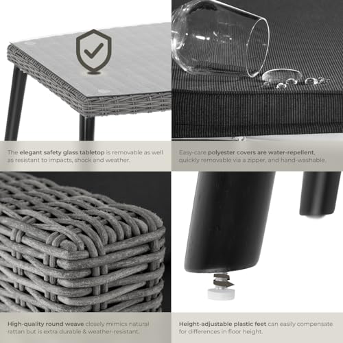 TecTake® Rattan Garden Sofa Set, UV-Resistant Poly Rattan, Weatherproof Aluminium Frame, Water-Repellent Cushions, Outdoor Table with Safety Glass Top, Adjustable Wooden Feet, Easy Assembly – grey