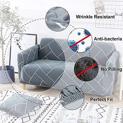 Teynewer 1-Piece Fit Stretch Sofa Cover, Sofa Slipcover Elastic Fabric Printed Pattern Chair Loveseat Couch Settee Sofa Covers Universal Fitted Furniture Cover Protector (2 Seater, #Grey Grid)