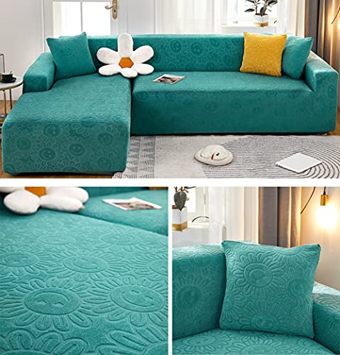 - Turquoise Green Velvet L Shape Sofa Cover Stretch and All Inclusive Universal Chaise Longue Slipcover for Living Room Corner Protection Fits 3 Seater Sofas (190 230cm)