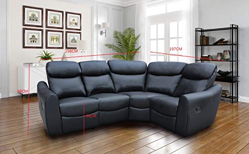 - UK Leisure World CORNER RECLINER BLACK SOFA SUITES SETTEE LAZY BOY BLACK FABRIC SEATER ARMCHAIR FAUX LEATHER (Black corner unit)