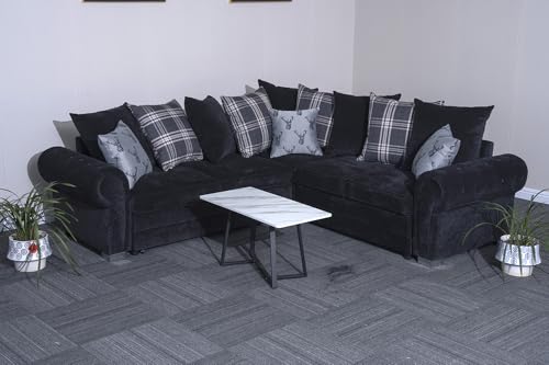 Verona L-Shaped Corner Sofa Bed with Pull-Out Sleeper and Scatter Back Cushions For Living Rooms (Black)