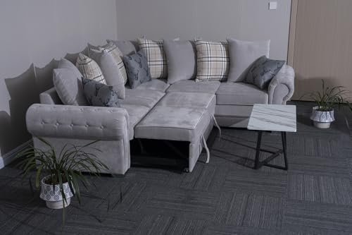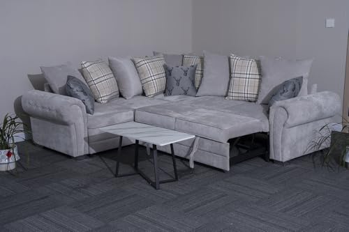 Verona L-Shaped Corner Sofa Bed with Pull-Out Sleeper and Scatter Back Cushions For Living Rooms (Grey)