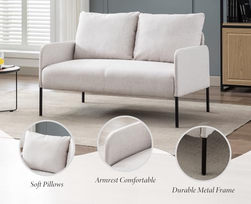 Ya-Home 2 Seater Sofa Modern Loveseat Sofa with Thick Cushion for Living Room Linen Sofa Couch for Apartment/Small Space, Beige