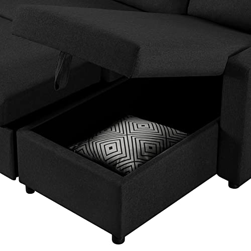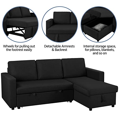 Yaheetech L-Shaped Sofa Bed 3 Seater Couch Pull Out Sectional Couch Bed Convertible Settee Click-Clack Corner Sofa with Storage for Living Room, Office, Black
