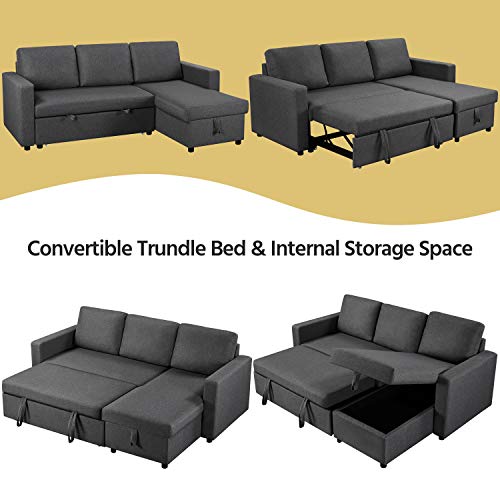 Yaheetech L-Shaped Sofa Bed 3 Seater Couch Pull Out Sectional Couch Bed Convertible Settee Click-Clack Corner Sofa with Storage for Living Room, Office, Grey