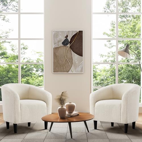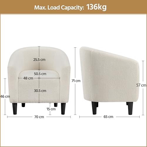 Yaheetech Tub Chair, Fuzzy Accent Armchair Sherpa Fabric Club Chair Boucle Barrel Chair Upholstered for Living Room Office Reception Cafe Bar, Ivory