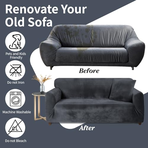 - SUPER SOFT VELVET: Indulge in the luxurious comfort of our sofa covers, crafted with exquisite velvet plush. The fabric boasts an incredibly soft handle, thanks to its short and dense hairiness. The thickened fabric resists pilling and fading, ensuring long-lasting durability. Its skin-friendly and breathable properties make it perfect for all seasons. Choose from a variety of colors to enhance your living room decor and revitalize your old furniture instantly