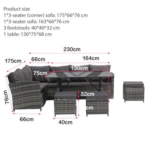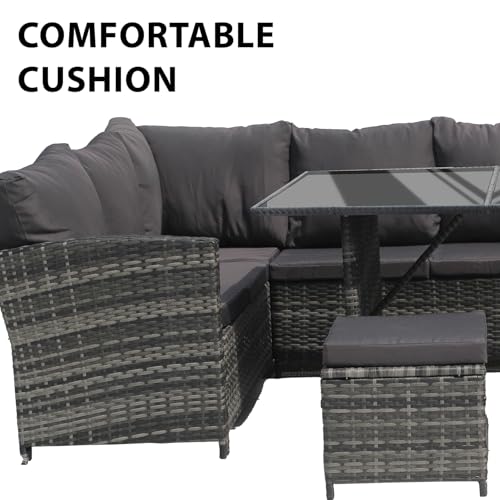 Yesuitme Garden Furniture Lounge Rattan Garden Furniture Garden Corner Sofa Set 9 Seater Rattan Sofa with table 3 Stools(Mixed Grey with Dark Cushion)
