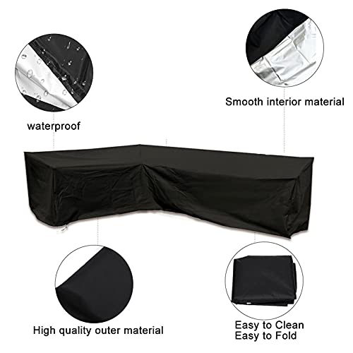- WATERPROOF &UV PROTECTION L shaped furniture cover made with waterproof fabric, excellent water resistant performance and good resistance to high temperature. It prevents the sun's harmful rays from discoloring and fading your furniture