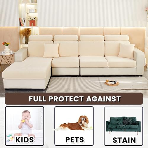 ZCXRYFL Sofa Seat Cushion Cover 1 2 3 4 Seater- Highly Elastic Chenille Sofa Cover Corner L U Shaped Chaise Longue Couch/Sofa Back Pad Seat Cushion Covers(Pillowcase:45X45cm,Beige)